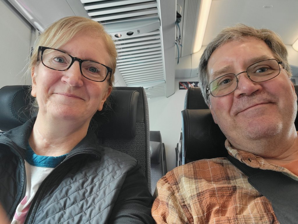 We took a circuitous path here on three different airlines. We’ve been travel hacking our trips, mostly flights. So we used points on Jetblue to JFK. Then, with more points hopped a British Airways flight, business class, to Gatwick airport in London. Took a National Expess bus ride, “I can’t believe I’m riding thru London and I can’t keep my eyes open”, to Heathrow, where we caught a Finnair flight to Helsinki.